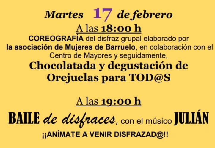 Martes, 17 de febrero a las 18:00 horas en el Centro de Día de Personas Mayores